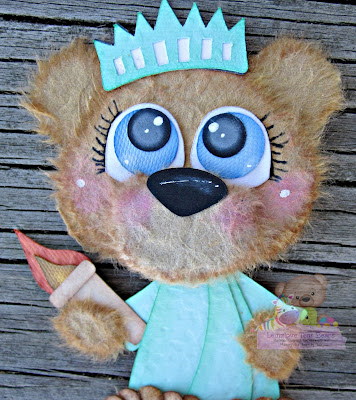 I created this liberty bear with mulberry paper, cardstock, and Two Scoops Bazzill cardstock. I also used a pattern from Kadoodle Bug Designs.